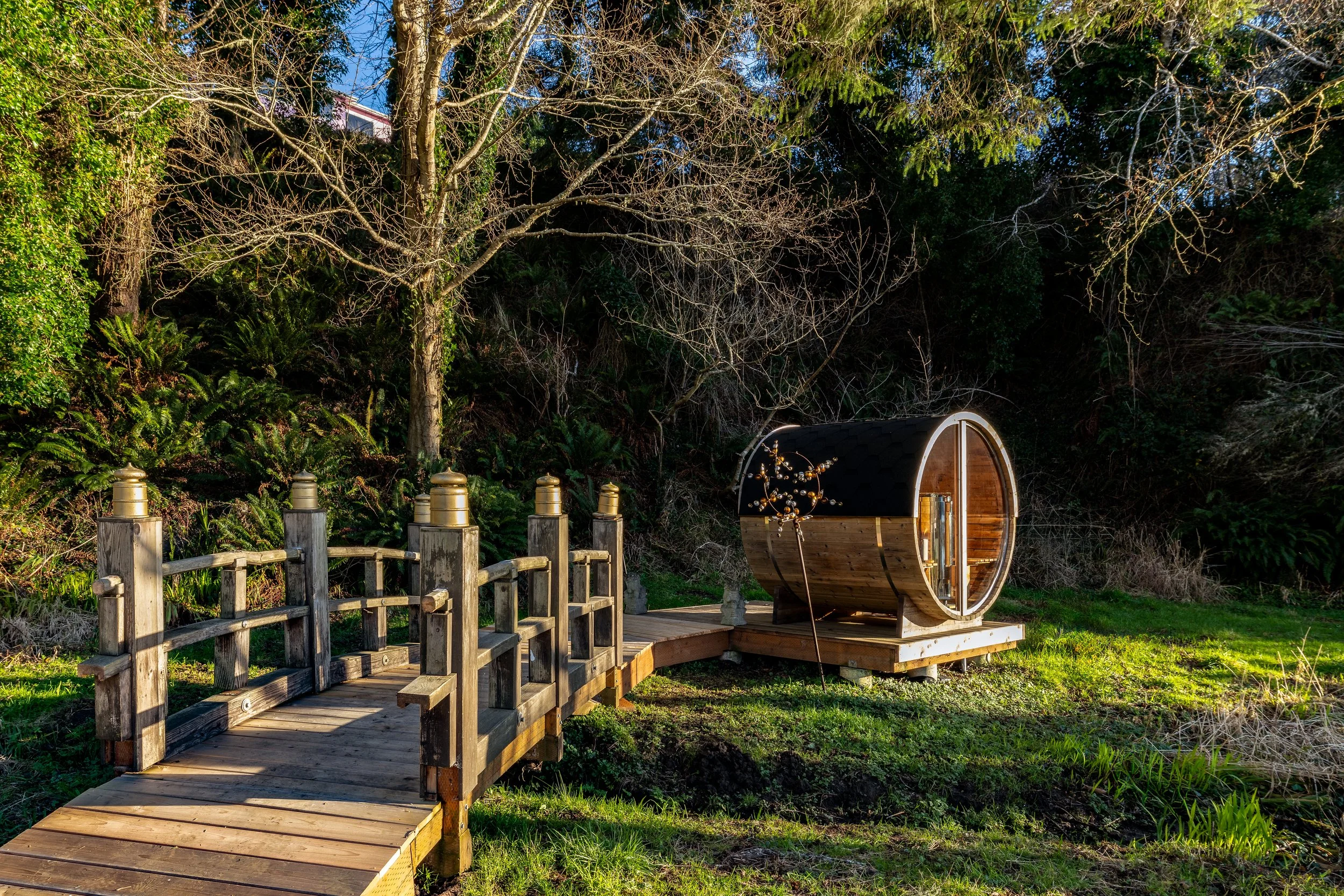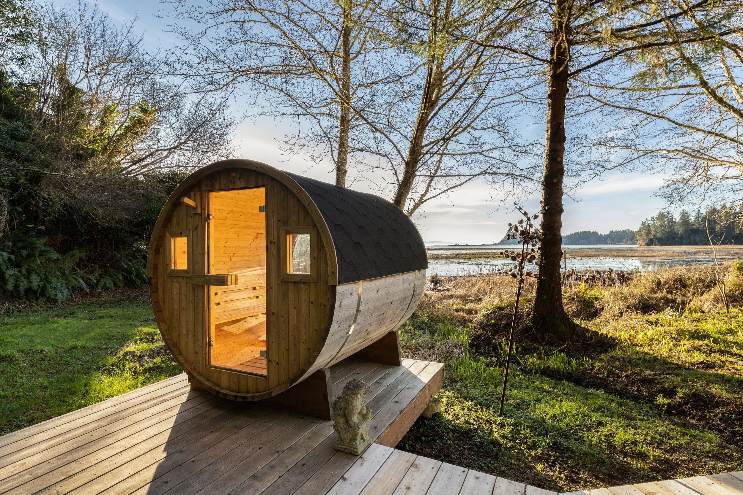Outside, guests enjoy a shared pier with The Nest cottage, perfect for morning coffee or evening sunsets, making this retreat a unique haven where history and comfort meet seamlessly. Heron House guests enjoy exclusive access to a sauna at the water’s edge offering a singular waterfront retreat. Your only neighbors will be cottage guests, or rent the entire property and have the whole cove to yourself!